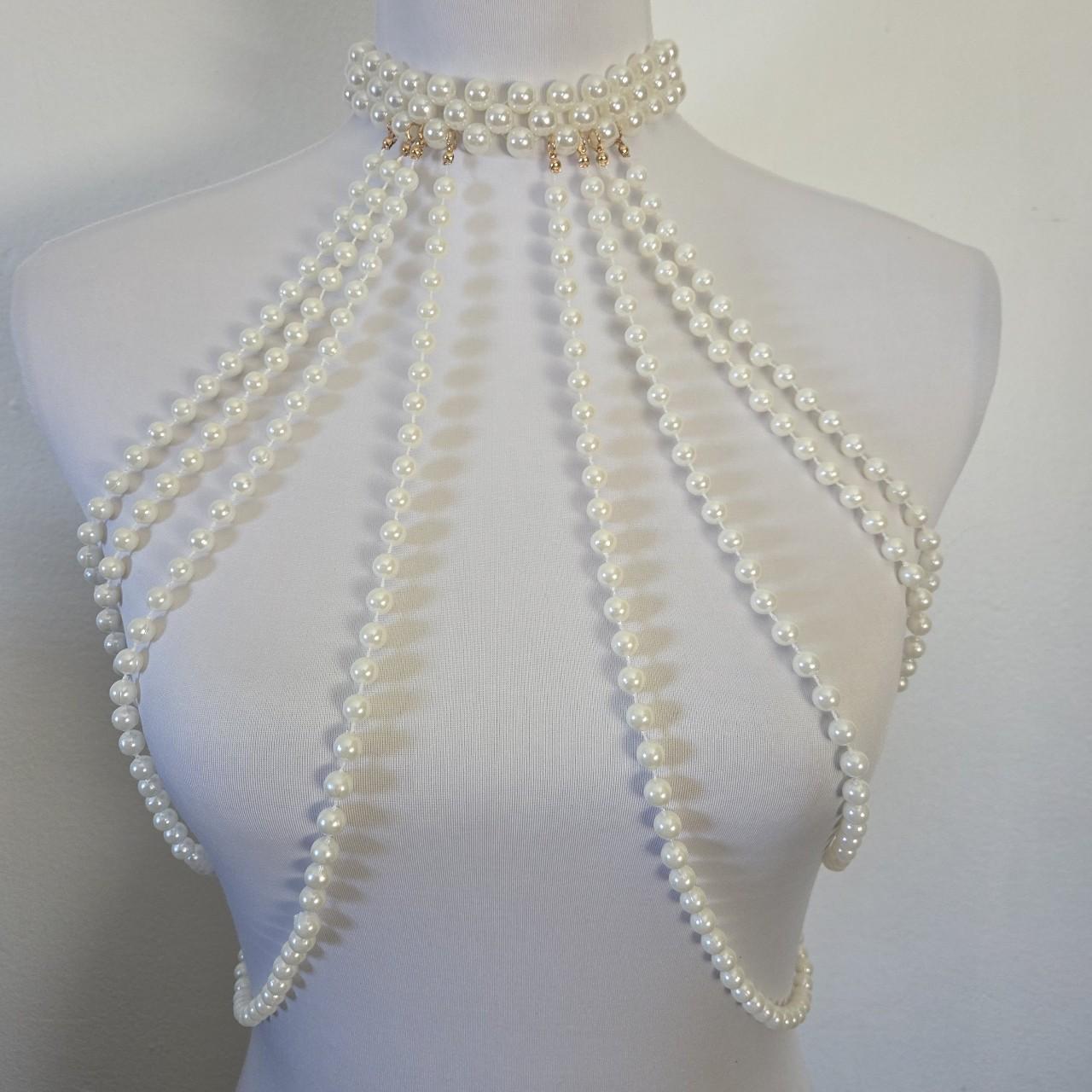 Luxury Pearl Body Chain Harness – Statement Choker Necklace with Multi-Layer Beads